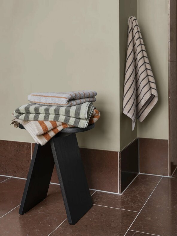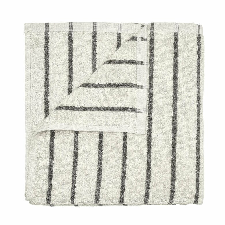 En stilren badhandduk med ett mer subtilt uttryck. Arto från Blomus i Moonbeam/Magnet med smala ränder ger badrummet en elegant och nedtonad design.