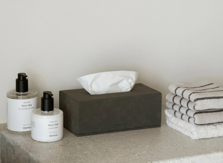 En stilren och mjuk detalj för badrummet. Arto gästhanddukar från Blomus i färgerna Moonbeam och Magnet kombinerar tidlös design med hög komfort.