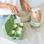 Ett smart, hållbart och slitstarkt alternativ till engångsförpackningar. Eggs To Go är den perfekta följeslagaren när du handlar ägg på marknaden, i gårdsbutiken eller direkt från hönsgården. Den robusta boxen rymmer upp till 10 ägg och skyddar dem effektivt tack vare det stöttåliga materialet och den praktiska clip-låset som håller allt säkert på plats.