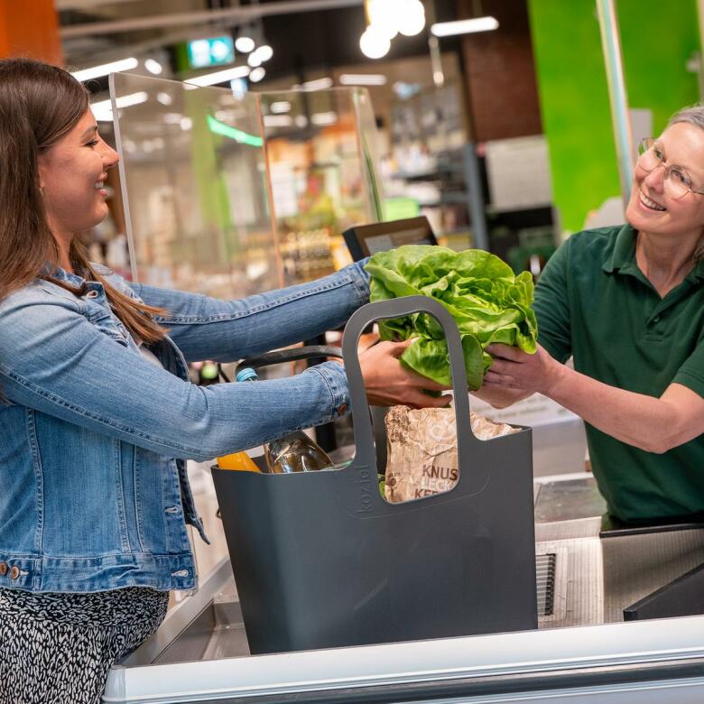 Den öppna designen gör det enkelt att packa och få överblick, medan de robusta handtagen ger ett bekvämt grepp även när väskan är full. Tasche XL står stadigt på egen hand, vilket gör den extra praktisk i vardagen.